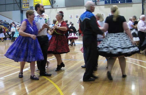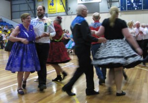 We had a bit of tourist time in Bendigo before we had to return home to prepare for our Birthday Dance. Before that though, I called a Country Howdown at Aldinga on the Saturday night – about 40 dancers on a small floor and live music by the Cherry Pickers Band. The Heggarties Band were there as well and later it was wonderful to see Paul Heggarty – while dancing on the floor, calling some of the moves that I had taught. We might have a future caller there. Then the JVC Square Dance 3rd Birthday. 10.00 am saw about 7 dancers come along to help Jacqueline and I set up the hall for the afternoon’s dancing – A Big Thank You to those helpers. Then we were so excited in the afternoon to find 6 squares of dancers having fun with some pretty basic Square Dancing – we had to keep it pretty easy for our newer dancers. Also a big thank you to the five callers who helped me with the entertainment – and also to the members of the Society Committee who always have supported our Birthday dances. Happy Dancing Everyone Jacqueline and John