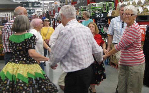 Thank you to Bunnings Victor Harbor for providing space and allowing Paddle Steamers Square Dance Group of Port Elliot to promote the activity of Square Dancing with a flashmob style demonstration – thank you also to the dancers from as far as Whyalla for coming to join Paddle Steamers in this promotion – 8 dancers from My Group at Victor Harbour attended. Learn to Square Dance Tuesday afternoon at Carrickalinga House Victor Harbor or Friday Night at The Strand Port Elliot. jvcsquaredance.com
